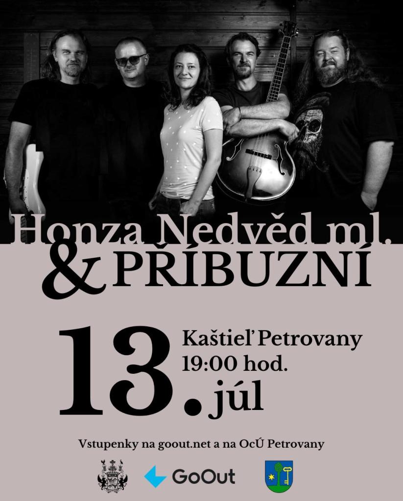 Koncert Honza Nedvěd ml. & PŘÍBUZNÍ Dátum: nedeľa 13.7.2025 Miesto: Kaštieľ v Petrovanoch Lístky je možné si zakúpiť na Obecnom úrade v Petrovanoch. Cena je 15 €.