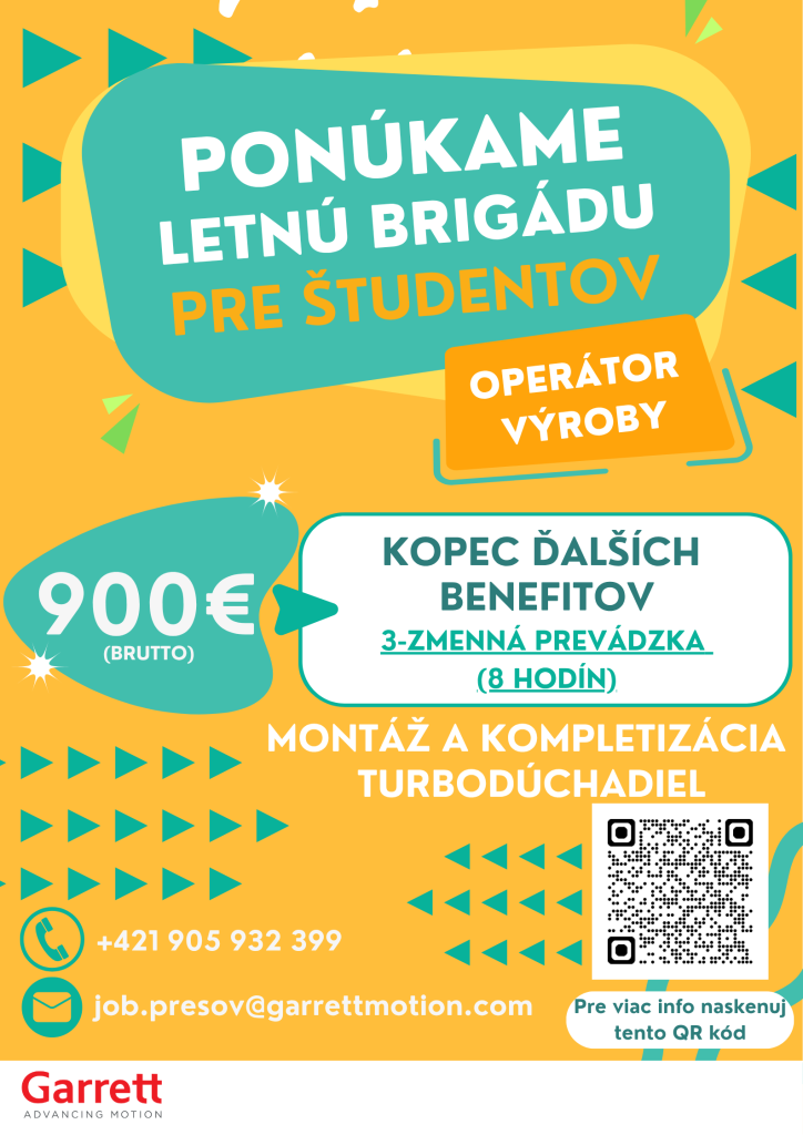 Ponuka letnej brigády pre študentov - operátor výroby vo firme GARRETT